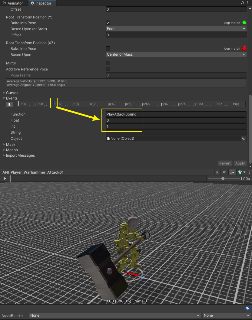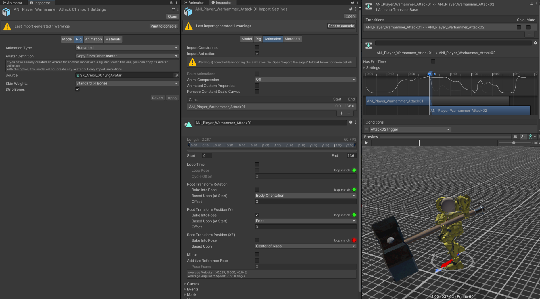 強調重型武器的重量感,預備與緩衝動作間距小且速度慢,攻擊動作間距大且速度快,如下圖以 Attack 02 為例