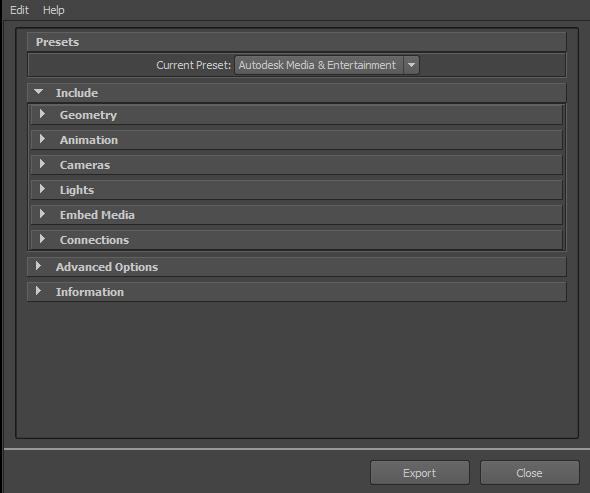 Include Lights (包括燈光):選擇是否導出場景中的燈光。
