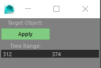 def Doit(): stime = cmds.intField( 'startTimeField', q=1, v=1 ) etime = cmds.intField( 'endTimeField', q=1, v=1 ) + 1 time = stime sel = cmds.ls(sl = True) for i in range(stime,etime): cmds.currentTime(i) cmds.xform( sel[0],ws=1, m=cmds.xform(sel[1],q=1,ws=1,m=1) ) cmds.setKeyframe(sel[0])